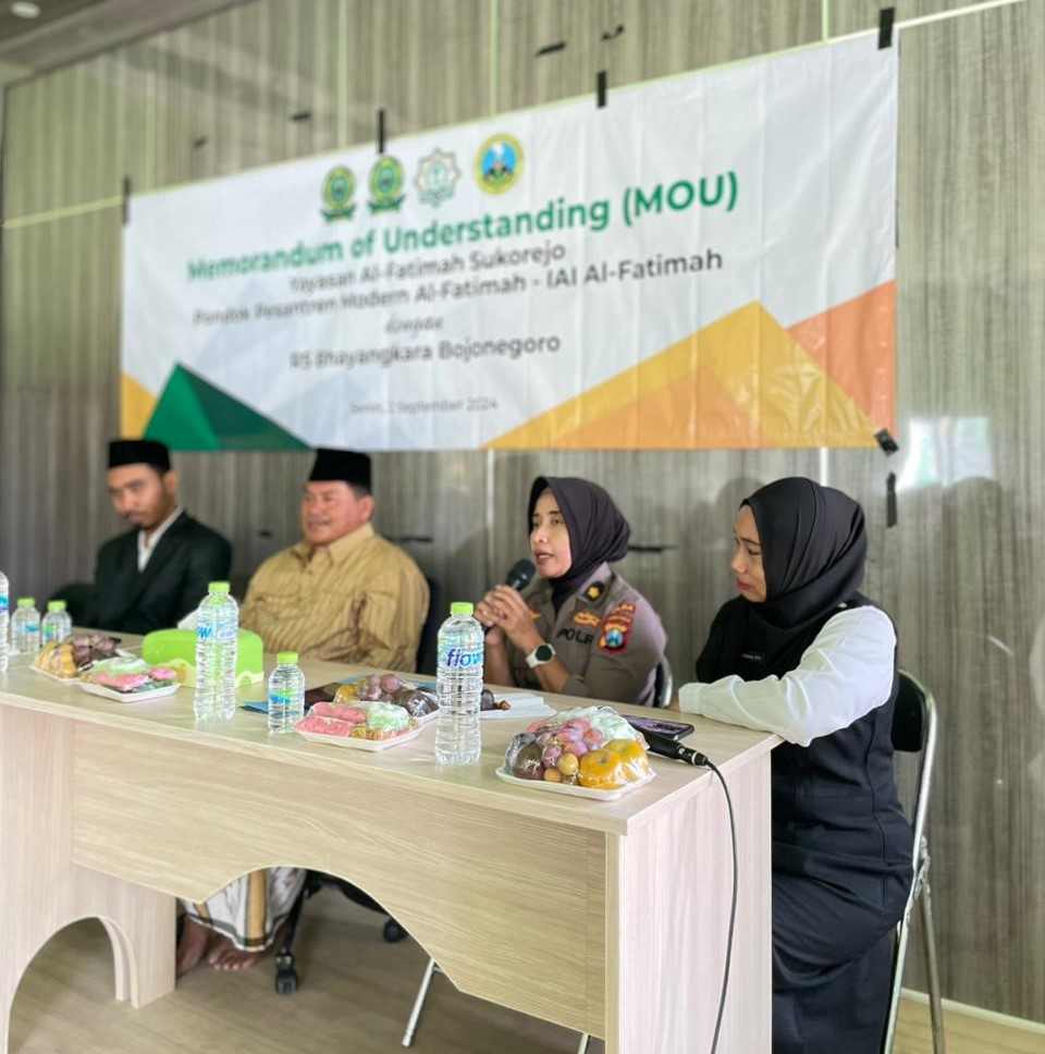 Poskestren Al FatimahSosialisasi Penandatanganan Memorandum of Understanding (MOU) dan Sosialisasi Kesehatan yang diselenggarakan di Pondok Pesantren (Ponpes) Al-Fatimah Bojonegoro, Senin (02/09/2024).